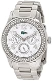Lacoste 2000692, This new ladies Multifunction Advantage features crystals in the bezel for an elegant look. A white dial with a stainless steel bracelet water resistant to 5 ATM. (Read More)